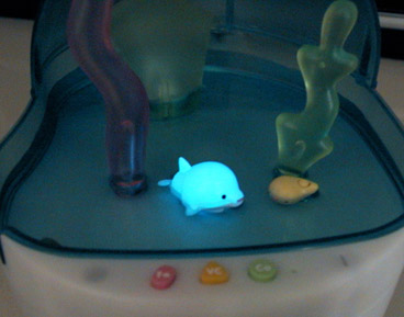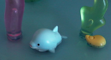 | The dolphin is extremely rare. It was a Limited Exclusive available only online, and only for a very short time and was never even shown on Tomy's site. I think they sold out within a few weeks. I was extremely lucky to get it. I was even more surprised to discover that it glows in the dark! (see photos further down) |