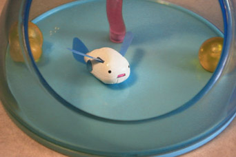 | Blue fish don't show up very well against their blue ocean floor and I had some extra Mutsus, so I thought I'd experiment on one of them with some white paint and see what happens. Here's how it came out..... |