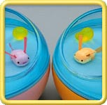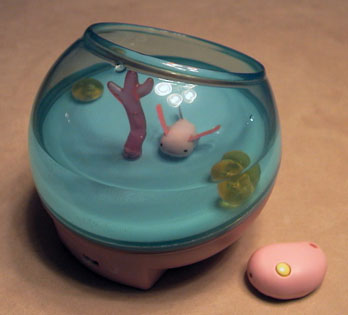 | Unlike the original tank, this one has no buttons on it for feeding and playing. It uses a little remote control instead. |