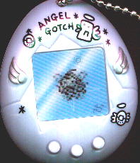 This is an angelgotchi bandage case that holds about 12 little angelgotchi bandages. The sticker on the 'screen' changes characters when held in different positions.