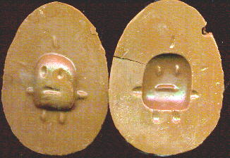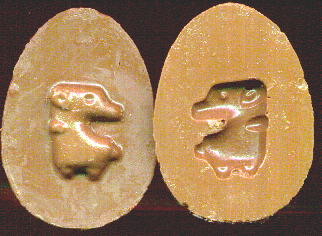 These are chocolate tamagotchi eggs from England. They are the shape of a "Cadbury's" Creme egg, but they are hollow chocolate. It is divided into 2 halves. There is a tam character sticking out of one side, and an indention of a tam on the other side so they fit together. It is made by a chocalate company based in England, so they probably will not be sold in the USA.