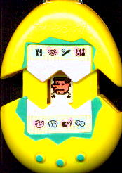 This tama toy open by pulling the top and bottom halves apart. The small cube inside rotates everytime it opens. On each side of the cube is a different character. There are 2 variations of this toy. One has a "Bill" secret character and the other has a "Zachi" alien secret character.