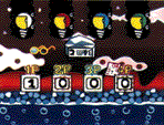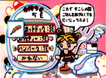 There are 21 different types of spaces to land on, which do a variety of different things. Some are cards (that I don't understand). Some will cause a huge anvil to drop on it's head, and some will raise or lower the "P" meter. Some will fill the happy meter, and one space causes a huge refridgerator to drop into the room and spit up a huge bowl of rice which fills your food meter.One space allows you to bet up to 3 points and try your luck at the tama slot machine. One allows all the characters to compete in a game together! There are 10 different games in this part...