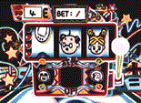 The game could be one of several ones. One has 2 big balls, you pick one to stand under, and either confetti or a steel girger will fall on your head. On is the high-low number game, and another is a peek-a-boo game where you try not to get hit in the head with a big hammer. Each game costs 2 points.