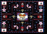 | The game screen is split between a room view and the gameboard view. The room on top is a 3-D room where all the tams float around. The gameboard has the 4 little color coodinated eggs that move as each player rolls the dice. Each player starts with 64 points also, that are used for food and play. As you take your first turn, the egg in the top half of the room hatches, and the egg in the bottom half moves around the board. |