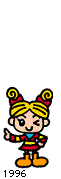 When starting the game, you are able to pick a gen 1 or gen 2 egg (solid or checkerboard), and the color of your egg. You can name it with either Japanese characters or American alphabet, and then you confirm everything and start the game. At this point, there is a screen where Mika-chu is singing, and _lots_ of writing i can't translate. Finally, you begin on the gamescreen. |