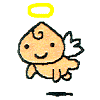 てんしっちの 幼児期の姿。羽根がはえて天使っぽく なってきた。 影絵でキンギョのまねをするのが得 意というから案外俗っぽい。 |