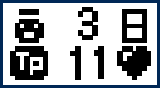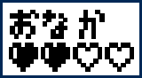 | てんしっちのおなかのすき具合がわかります。 黒いハートが増えるほど満足しているよ。 おなかがすいていたら「食事」をあげてね。 | |