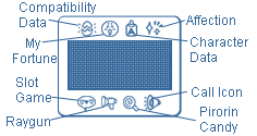 With the A button, select the mark, then press B to enter. Now try pressing the A or B button. You can check your character's current data! If you have many black marks, your Love Love and Genki levels are high.