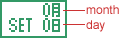 First, set the date. Press the B button to bring up the date adjust screen. With the A button select the month and with the B button, select the day. Press C to finish.