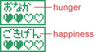 There are 4 hearts for each indicator. When all the hearts are black, Santaclautchi is content. When he is hungry, he'll activate his attention icon to ask for food.